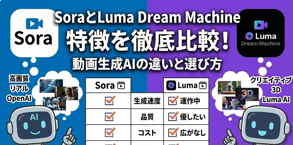 最近、動画生成AIの進化が凄まじくて、SNSを開けばまるで実写のような映像が流れてきますよね。特に話題なのが、OpenAIのSora(ソラ)と、Luma AIのLuma Dream Machine(ルマ・ドリームマシン)です。でも、実際に使ってみると「あれ、なんか動きがおかし... -
