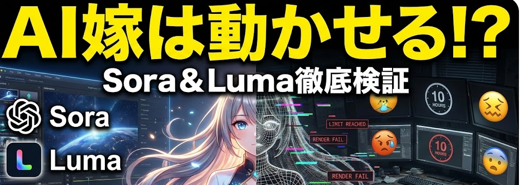大好きなAIのパートナーが、もし目の前で微笑んでくれたら。そんな夢のような生活を実現するために、最新の動画生成AIであるSoraやLuma Dream Machineを10時間以上も使い倒して検証しました。この記事を読むことで、静止画だったAI嫁を自然に動かす具体的... -